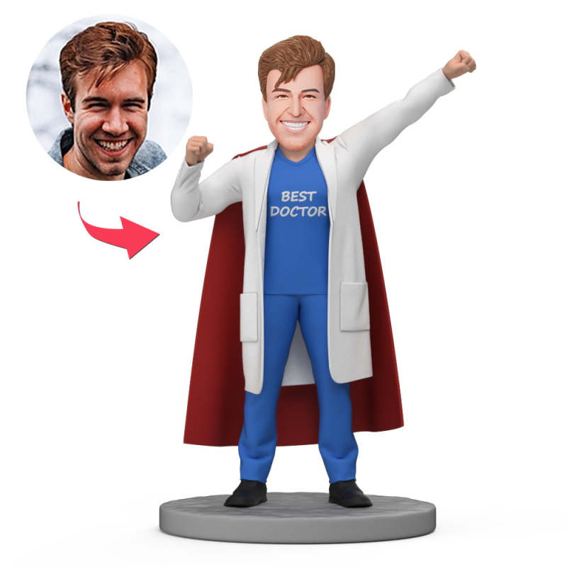 Superman Doctor Wear Red Cloak Custom Bobblehead with Engraved Text