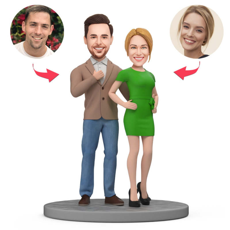 Valentine Gift Custom Bobblehead Woman in Green Dress Hugged by Her Man