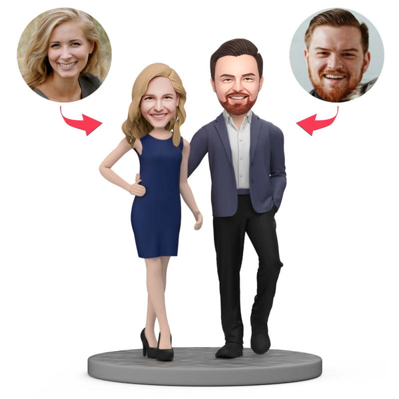 Valentine's Day Gift Custom Bobblehead Stylish Couple in Blue Suits
