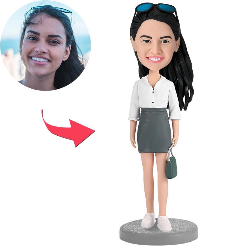 Woman With A Bag In Her Hand Custom Bobbleheads With Engraved Text