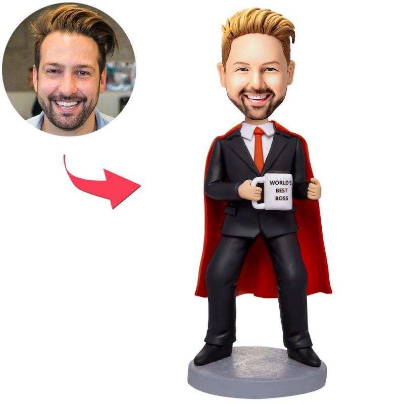 World's Best Boss Super Businessman Holding A Water Glass Custom Bobbleheads With Engraved Text